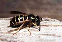 Саксонская оса (Dolichovespula saxonica). Представители подсемейства общественных ос (Vespinae) не способны выделять воск, поэтому, строят свои гнезда из вещества, похожего на тонкий картон. Этот процесс можно наблюдать у одного из наших самых обычных видов - саксонской осы (Dolichovespula saxonica). Для этого она соскабливает старую древесину на сухих стволах, пнях и даже заборах, оставляя продольные бороздки. Затем, особым образом обработав и перемешав ее со слюной, строит шарообразное гнездо, которое помещает на ветвях деревьев, под нависающими скалами или крышами домов. Зачастую такое соседство опасно.