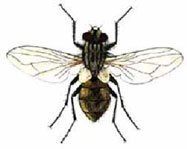 Всем известная комнатная муха (Musca domestica), относящаяся к семейству настоящих мух (Muscidae), иногда не брезгует падалью, несмотря на то, что основной пищей для личинок служат навоз, бытовые отходы. Из-за своей нечистоплотности этот вид может служить переносчиком яиц различных гельминтов, а также, возбудителей трихомоноза, туберкулеза, туляремии, чумы, энцефаломиелита, полиомиелита, брюшного тифа, дизентерии, холеры.
